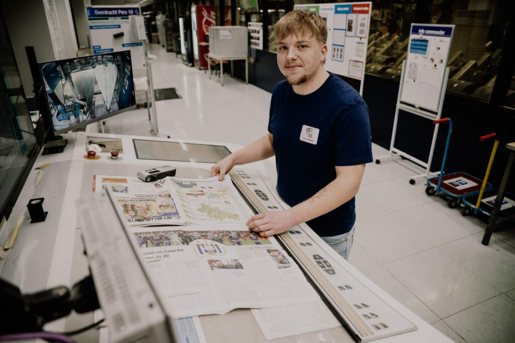 Kylian zit boordevol ambitie. “Ik zou graag hogerop geraken. Misschien de functie van hoofdverzender, dat is mijn droomjob. Ik ben blij dat ik hier mijn talenten mag en kan benutten.” Of hij zelf de papieren krant leest? “Ja. Elke dag lees ik Het Belang van Limburg nog voor ik naar het werk vertrek. Vooral de sportpagina’s, maar ook de andere lees ik allemaal. Ik ben jong, ja, maar ik lees nooit digitaal. Geef mij maar de papieren krant. En natuurlijk ben ik fier dat ik aan het drukken van die krant mag meewerken.”